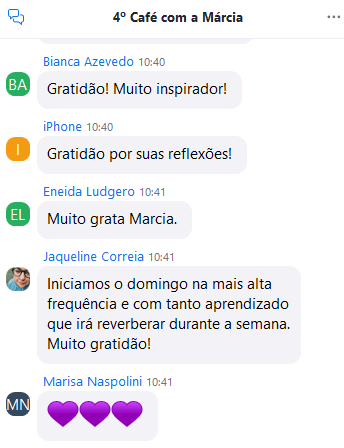 Você participa de encontros ao vivo com a Márcia todos os meses, incluindo cursos especiais, cafés reflexivos e canal aberto para perguntas e escuta ativa.
